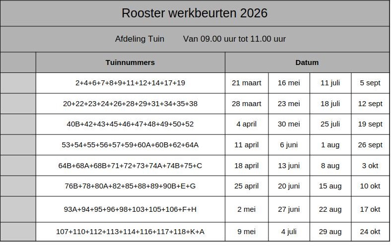 Ook in het jaar 2026 worden alle leden tot 70 jaar weer 4x verwacht om ons complex een goed onderhouden aanblik te geven.